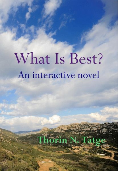 =What is the ultimate goal?= If answering this timeless question were up to you, where would you turn-to the natural world or to the works of civilization? Would you take up politics? Warfare? Love? Philosophy? Would you seek out company or adopt a solitary path? In this unique novel, the choice is yours. As either a wild mink or an educated water dragon, explore a detailed world centered around two countries perpetually at war. Revel in the possibilities. Featuring: -79 possible endings (and 1 impossible one)! -A four-legged protagonist! -An innovative challenge system! -Poetry at the end of each adventure! -Secrets to be discovered! _What Is Best?_ is larger, richer and more grown-up than the typical interactive novel. Will you discover purpose in its pages? =Because a single life may not be enough to find the answer.=