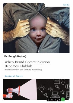Doctoral Thesis / Dissertation from the year 2018 in the subject Communications - Public Relations, Advertising, Marketing, Social Media, grade: cum laude, T.C. Yeditepe University Istanbul (Institute of Social Sciences - Media Studies Doctoral Program), language: English, abstract: Living in a media-dominated age in which countless images circulate around the world, we are constantly faced with an environment that has become increasingly saturated by advertising. An emerging phenomenon that can be increasingly noticed in a global sense, but especially in Turkish advertising of 21st century which will be explored in this doctoral thesis, is infantilization. Infantilization is the practice of treating adults like children and, thus, viewing them as if they have never grown up - an old concept which appears in a great number of fields, from natural sciences to social and cultural studies. However, infantilization received rarely attention until late 20th century, even processes of infantilization had been occurring for centuries in various areas of life from religion to politics. Although infantilization is not new, its contemporary range of development and its influence on consumers today is. Meanwhile it has reached its ultimate breakthrough in the realms of marketing and mass media culture in general. Consumer infantilization increasingly becomes a technique to attract adults by approaching them like children with advertisements based on the imagination and level of a child. In this sense, the Turkish advertising landscape is rich in elements from children's worlds which originally address children but actually are instrumentalized in particular for adult consumer purposes. Thus, the purpose of the thesis is to examine and improve a deeper understanding of infantilization as an emerging phenomenon in 21st century with regard to its implementation in Turkish advertising. The thesis will demonstrate how and why brands implement the concept of infantilization within the framework of their marketing strategy in advertisements. Using the qualitative multiple-case study research design, the thesis adopts a psycho-semiotic method within the postmodern worldview by analyzing selected advertising campaigns (226 commercials and 52 Facebook posts) of 60 well-known brands in Turkey between 2004-2018. The overriding aim of the thesis is to reveal how the ideal postmodern consumer - the child-like adult - is attempted to create through infantilization within unconscious processes by activating psychic dynamics via childhood signs embedded in Turkish advertisements.