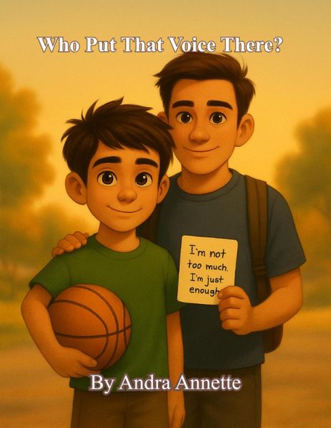 Who Put That Voice There? A story of self-talk, safe spaces, and the big brothers who help us listen differently. Is there a voice in your head that says things like, "You're not good enough" or "You always mess things up"? Leo hears it, too. In this heartfelt and empowering picture book for ages 7-11, young readers follow 8-year-old Leo as he struggles with a quiet, critical voice in his mind - one that makes him question his worth. But when his big brother Jayden gently helps him talk about it, Leo learns something life-changing: That voice didn't start with him. He doesn't have to believe everything it says. And he has the power to talk back with truth. Perfect for children dealing with anxiety, low self-esteem, or negative self-talk, Who Put That Voice There? is a comforting and practical guide wrapped inside a relatable sibling story. Through warm storytelling and cinematic illustrations, kids discover: How to recognize the inner critic Where those mean thoughts come from Simple tools to build healthy, kind self-talk The power of safe relationships and emotional honesty Includes interactive pages and caregiver tips to support reflection, journaling, and emotional growth. Perfect For: School counselors & therapists SEL (Social-Emotional Learning) classrooms Parents, mentors, and caregivers Any child learning to trust their real voice Because the voice that puts you down isn't yours. You are the one learning to speak kindly to yourself.