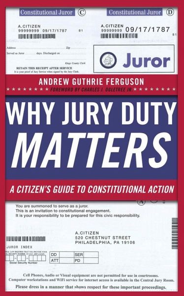 In Why Jury Duty Matters, Andrew Guthrie Ferguson reminds us that whether we like it or not, we are all constitutional actors. Jury duty provides an opportunity to reflect on that constitutional responsibility. Combining American history, constitutional law, and personal experience, the book engages citizens in the deeper meaning of jury service. Interweaving constitutional principles into the actual jury experience, this book is a handbook for those Americans who want to enrich the jury experience. It seeks to reconnect ordinary citizens to the constitutional character of a nation by focusing on the important, and largely ignored, democratic lessons of the jury.