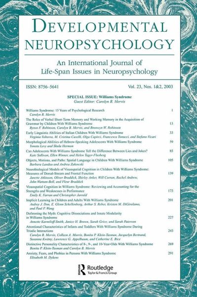 The articles in this special issue form three overlapping themes: papers concerned with language development, other aspects of cognition, and interpersonal relations and personality. The papers provide strong evidence of the importance of the study of individuals with neurodevelopmental genetic disorders for enhancing the understanding of the complex manner in which initial genetic differences impact on both behavior (performance) and processing strategies from infancy through adulthood. Much work remains to be done, not only from a psychological or a biological perspective but, most importantly, from an integrated psychological-biological perspective. The hope is that these articles will motivate future studies informed by the genetic-developmental approach both on Williams syndrome and on other neurodevelopmental genetic disorders.