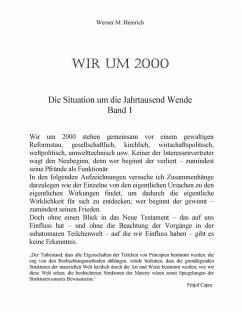 Wenigstens seit dem Ende des zweiten Weltkriegs bin ich, der Autor, ein bewusster Zeitzeuge eines ununterbrochenen gesellschaftlichen Wandels. Das bewog mich, für meine Enkel das aktuell erkennbare Weltbild im Jahr 2000 mit seinem Zeitgeist, an der aktuell erkennbaren Wirklichkeit zu reflektieren. Ursprünglich sollte nur für sie die Wirklichkeit durch die Beobachtung des Zusammenhangs von Physik und Transzendenz skizziert und zum Zeitpunkt ihrer Volljährigkeit an sie ausgehändigt werden. Doch, veranlasst durch die lebhafte Nachfrage nach einzelnen Kapiteln, habe ich mich zu einer Veröffentlichung des gesamten Inhalts unter dem Titel "Wir um 2000" entschlossen. In drei Teilen wird aus der Perspektive der modernen Naturwissenschaft, der Religion und der Philosophie auf die Unvollständigkeit der rein rational erfahr-baren Welt verwiesen. Denn die nichtsichtbare Ordnungsstruktur der ganzheit-lichen Welt ist die vollkommene und unveränderbare Wirklichkeit. 1. Teil: "Die Situation um die Jahrtausend-Wende", beschreibt die komfortable Lage in Mitteleuropa, beeinträchtigt von unseren selbstverursachten Schwierigkeiten. Es werden die gelebten Situationen mit der eigentlichen Wirklichkeit in einen Vergleich gestellt. Eine Wirklichkeit, nach der wir leben könnten, fände die Priorität von Werten angemessene Beachtung. 2. Teil : "Der äußere und der innere Mensch", schildert die unterschiedlichen bis gegensätzlichen Bedürfnisse des Menschen, von der Zeitlosigkeit vor seiner Geburt bis in den physischen Tod. Teil 2 veranschaulicht die Egostrategie im Gegensatz zu den Interessen für Spiritualität und betont die Nachhaltigkeit eines ganzheitlich gestalteten Lebens. 3. Teil: "Quantenphysik und das Evangelium des Johannes", verweist auf den engen Zusammenhang von Geist und Struktur sowohl im Evangelium als auch im subatomaren Feld der modernen Physik. In der Konsequenz wird der Einfluss des Denkens auf die Materie - und Mystik als Schritt der menschlichen Evolution angesprochen.