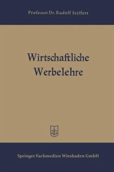 Das Wesen der Werbung.- Das Wesen der Werbung.- Die Werbetechnik.- Die Werbeelemente und Werbefaktoren.- Die Werbekonstanten, Werbemittel und Werbehilfen.- Die Werbeträgerherstellung.- Die Werbestreuung.- Die Werbeträgererfolgsprognose.- Die Werbewirtschaft.- Die Bedeutung der Werbung für die Wirtschaft.- Die Markterkundung als Grundlage der Werbung.- Die Werbeplanung.- Die Werbearbeit.- Werbekosten, Werbeerfolg, Werberevision.- Die Gebiete der Wirtschaftswerbung.- Die Werbeschulung.- Die Werbeschulung.