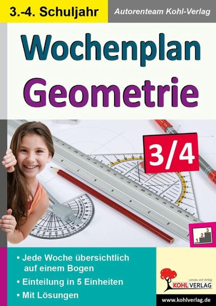 Dieses Arbeitsheft wurde speziell für den Einsatz in den Klassen 3 und 4 der Grundschule entwickelt. Die Wochenpläne sind ideal für die Freiarbeit, das tägliche Üben, die Nachhilfe oder die Selbstlernzeit. Sie bieten eine Vielzahl an Übungen und Aufgaben, die in drei Schwierigkeitsstufen unterteilt sind, um mathematische Grundkenntnisse zu wiederholen, zu festigen und zu vertiefen. Alle Arbeitsblätter können flexibel genutzt werden und sind mit Lösungen zur Selbstkontrolle ausgestattet. Im Fokus dieses Wochenplans stehen die geometrischen Fähigkeiten der Schüler. Durch verschiedene Aufgaben wird das räumliche Denken geschult, der Umgang mit geometrischen Formen, Flächen und Körpern gefördert und vertieft. Die Kinder lernen den sicheren Umgang mit Geodreieck und Zirkel, indem sie senkrechte und parallele Linien zeichnen, mathematische Muster erforschen und erste Würfelkonstruktionen erstellen. Das Ziel dieses Heftes ist es, den Schülern ein tiefes Verständnis der Geometrie zu vermitteln, ihre Raumvorstellung zu stärken und ihre Problemlösungsfähigkeit zu fördern. Sie erlernen den Umgang mit ebenen Figuren, üben das Zeichnen von Winkeln, Waagerechten und Symmetrieachsen und entdecken die Eigenschaften von Quadrat, Rechteck und Dreieck. Die Aufgaben erfordern höchste Konzentration, insbesondere bei der Arbeit mit geometrischen Mustern, die durch Drehungen um einen Mittelpunkt entstehen. Zudem werden die verschiedenen geometrischen Körper untersucht: Die Schüler lernen, ihre Eigenschaften zu erkennen, Schrägbilder zu zeichnen und Körpernetze zuzuordnen. Auch das Berechnen von Flächen und Umfängen wird in einfachen Aufgaben geübt, wobei der Wert für ¿ auf 3,14 festgelegt wurde, um die Berechnungen zu erleichtern. Die Wochenpläne bieten eine Aufgabe pro Tag, sodass die Kinder im eigenen Tempo arbeiten können, ohne überfordert zu werden. Die Differenzierung in drei Niveaustufen ermöglicht es, die Aufgaben individuell an die Bedürfnisse der Schüler anzupassen. 48 Seiten, mit Lösungen