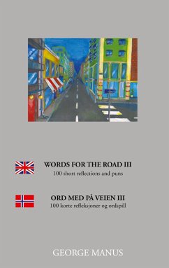 WORDS FOR THE ROAD III The author George Manus released his first "WORDS FOR THE ROAD" in May 2018. The second saw daylight in December, and this, the third, came in Mars 2019. With this short interval between the release-dates in mind, he dedicated it to "The Time". He simply calls the book WORDS FOR THE ROAD III with subtitle: 121 short reflections and puns, and presents them like the two first ones in both English and Norwegian. It¿s not a coincidence that the first contained 114, the second 117, and this one 121 short reflections and puns. Three of the authors lucky numbers are 14 - 17 and 21. ORD MED PÅ VEIEN III Forfatteren George Manus utgav sin første ORD MED PÅ VEIEN i mai 2018. Den andre så dagens lys i desember og den tredje ble utgitt i mars 2019. Han har kalt boken ORD MED PÅ VEIEN III med undertittel: 121 korte refleksjoner og ordspill, og presenterer dem som de to første på både engelsk og norsk. Det er ingen tilfeldighet at den første inneholdt 114, den andre 117 og denne 121 korte refleksjoner og ordspill. Tre av forfatterens lykketall er 14 - 17 og 21. Happy reading - God leselyst March 2019
