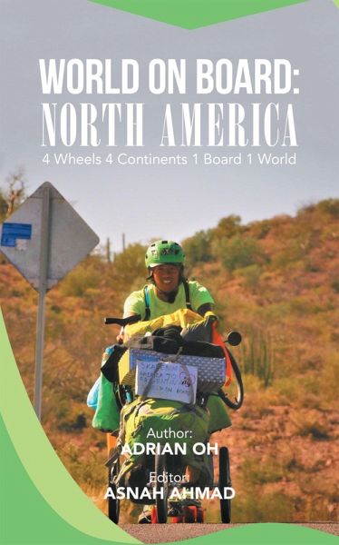 Adrian accomplished the almost impossible when he skateboarded across the world. He left his teaching job in Singapore to pursue his adventurous goal in 2017. For 2 years, he skated on a longboard for 24,000 km, across 33 countries in 4 continents. He documents this arduous journey with amazingly truthful reflections and a dash of humour. Through his journey, we ride pillion as he skates from Vancouver, Canada, down to the USA Pacific Coast, Mexico's Baja California, Mainland Mexico and finally, Central America, before completing his North America leg in Panama. Candidly written and filled…mehr