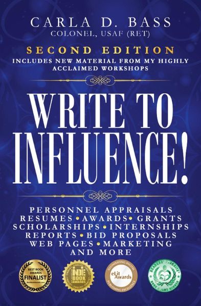 Winner of five national-level awards: 2020 eLit Book Awards - Gold Medal: Education/Academic/Teaching 2018 eLit Book Awards - Bronze Medal: Business/Careers/Sales2017 Next Generation Indie Book Awards - Finalist: Careers2017 Best Book Award - Finalist: Careers2017 Reader's Favorite Award - Honorable Mention: OccupationWhat readers say: Your Write to Influence! training ... led to increased professional advancement opportunities for countless numbers of service members. -- Lt. Gen. Dana T. Atkins, USAF (Ret), President and CEO, Military Officers of America Association (MOAA) Bass's "e;Write to Influence!"e; is an invaluable resource ... The process of drafting effective professional writing projects and then honing them to perfection has rarely been so inviting or presented with such clarity and enthusiasm. -- Booklife Prize Write to Influence! is a gem! Anyone interested in powerful, super-charged writing will appreciate this clear discussion of how to produce attention-grabbing pieces -- D. Donovan, Senior Reviewer, Midwest Book Review This book should be in every professional's library. I heartily recommend Write to Influence! -- Baba Zipkin, Former Senior Counsel, IBM Write to Influence! will be my go-to-guide for many years to come. It is now a must-read reference for all my employees. -- Rick Mix, President and CEO, Cleared Solutions Inc. This helped me pass my college classes! Write to Influence! is an amazing source if you want to improve your writing to earn higher grades! 10/10 recommend! -- Emily, Amazon ReviewerPowerful writing changes lives! It's also the lifeblood of successful organizations. It correlates directly to success -- personal and professional -- and often tips the balance between success and failure. With this book, make every second of the reader's time play to your advantage. Chose "e;Write to Influence!"e; when persuasive writing is paramount to your goals. Learn to: Write to win with products - clear, concise, and compelling Extend your influence -- persuade others to support your cause Generate powerful resumes and input to performance reviews Compete well for contracts, grants, etc. Defend budgets and justify additional resources Compose polished, succinct, and effective email Nail the essay for college applicationsThe second edition includes 70 new pages, incorporating material from Carla's highly acclaimed workshops given to government agencies, corporations, private businesses, NGOs, and academia. From powerful writing to banish bureaucratic blather to composing resumes, input for performance reviews, presentations, elevator speeches, grant submissions, and essays for college applications ... this book covers it all.