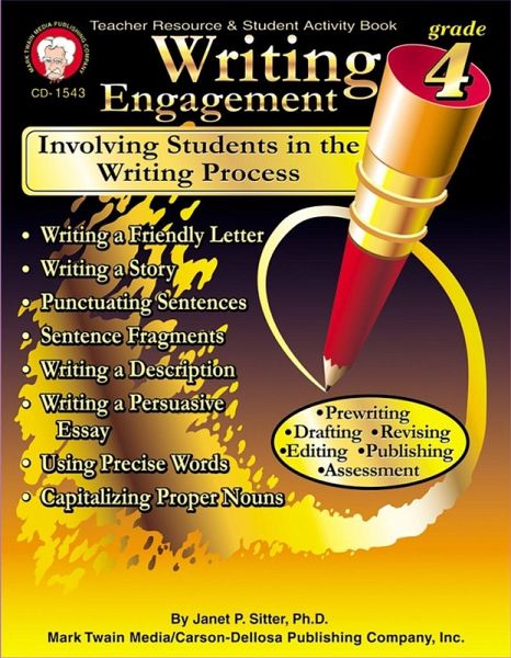 These fun writing exercises will improve students' understanding of the writing process along with their language arts skills. This engaging reinforcement workbook includes reproducible practice and application work pages, evaluation rubrics for teacher and students, student writing prompts, writing skills tests, and an answer key. Unit topics include writing friendly and professional letters, punctuating sentences, writing a persuasive essay, creating a story, using precise words,capitalization, punctuation, and more! Mark Twain Media Publishing Company specializes in providing captivating, supplemental books and decorative resources to complement middle- and upper-grade classrooms. Designed by leading educators, the product line covers a range of subjects including mathematics, sciences, language arts, social studies, history, government, fine arts, and character. Mark Twain Media also provides innovative classroom solutions for bulletin boards and interactive whiteboards. Since 1977, Mark Twain Media has remained a reliable source for a wide variety of engaging classroom resources.