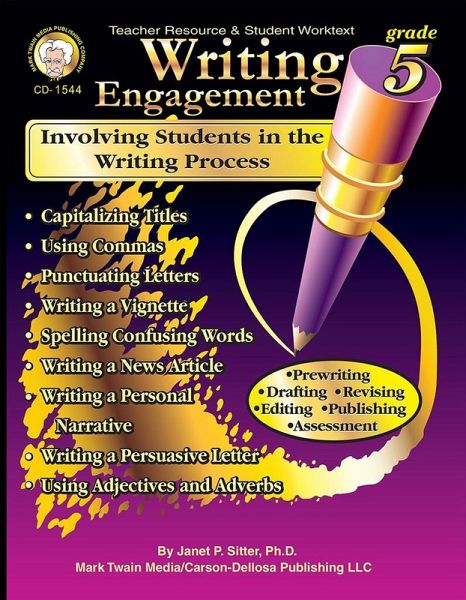 These fun writing exercises will improve students' understanding of the writing process along with their language arts skills. This engaging reinforcement workbook includes reproducible practice and application work pages, evaluation rubrics for teacher and students, student writing prompts, writing skills tests, and an answer key. Unit topics include using commas, narrative writing, expository writing, writing a persuasive essay, writing a vignette, using adjectives and adverbs, and more! Mark Twain Media Publishing Company specializes in providing captivating, supplemental books and decorative resources to complement middle- and upper-grade classrooms. Designed by leading educators, the product line covers a range of subjects including mathematics, sciences, language arts, social studies, history, government, fine arts, and character. Mark Twain Media also provides innovative classroom solutions for bulletin boards and interactive whiteboards. Since 1977, Mark Twain Media has remained a reliable source for a wide variety of engaging classroom resources.