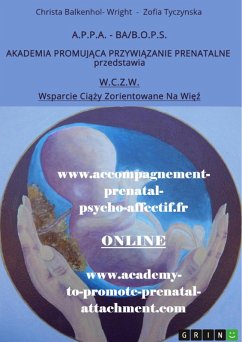 Document from the year 2025 in the subject Psychology - Developmental Psychology, , language: Polish, abstract: Niniejsza broszura pokrótce przedstawia BONDING ANALYSIS, nowa rewolucyjna metode wspierania ciazy w celu promowania wiezi prenatalnej, opracowana przez dwóch wegierskich psychoanalityków dr György Hidasa i dr Jenö Raffai, umozliwiajaca kobietom w ciazy nawiazanie psychicznego i emocjonalnego kontaktu z dzieckiem oraz rozwijanie i poglebianie tego kontaktu przez caly okres ciazy. Niniejsza broszura opisuje równiez autorska metode "B.O.P.S. - Bonding-Oriented Pregnancy Support", uzupelniona o nowa koncepcje "samoopieki", która mozna wykorzystac, aby pomóc kobiecie w ciazy odkryc jej deficyty emocjonalne, które maja swoje zródlo w "toksycznej" edukacji i zwiazkach. Deficyty te moga uposledzac lub nawet uniemozliwiac nawiazanie intensywnego i glebokiego kontaktu miedzy matka a dzieckiem. Jesli dziecko doswiadcza bezpieczenstwa wiezi/przywiazania przed narodzinami, tworzy to podstawowe zaufanie, które jest niezbedne do przetrwania. Co wiecej, dziecko moze rozwinac wczesna swiadomosc, ze jest niezalezna istota. Interakcje z matka, które maja miejsce za posrednictwem róznych kanalów komunikacji oraz fakt, ze dziecko uczestniczy we wszystkim, co matka mysli, czuje i czego doswiadcza, wszystkie te elementy przyczyniaja sie do wzmocnienia wiezi prenatalnej. Dzieki wsparciu metoda BOPS w polaczeniu z koncepcja samoopieki, kobieta w ciazy jest psychologicznie ustabilizowana i ma mozliwosc radzenia sobie z ciaza, relacjami z partnerem, sytuacja zyciowa i zawodowa w bardziej pozytywny i bezstresowy sposób. Dziecko czerpie z tego ogromne korzysci! Christa Balkenhol-Wright nie tylko towarzyszy kobietom w ciazy w stosowaniu metody BOPS, ale takze uczy jej na kursach online, które oferuje w jezyku niemieckim, angielskim i francuskim. Niniejsza broszura jest równiez dostepna w jezyku angielskim, francuskim, wloskim, hiszpanskim, wegierskim, holenderskim, tureckim i dunskim. Kolejne tlumaczenia sa w toku i zostana opublikowane przez GRIN Verlag w ciagu roku. Broszura zostanie przetlumaczona na jezyk grecki, portugalski, arabski i ostatecznie hindi Wiecej informacji na temat kursów szkoleniowych online mozna znalezc na nastepujacych stronach internetowych: www.academy-to-promote-prenatal-attachment.com www.accompagnement-prenatal-psycho-affectif.fr www.vorgeburtliche-eltern-baby-bindung.net