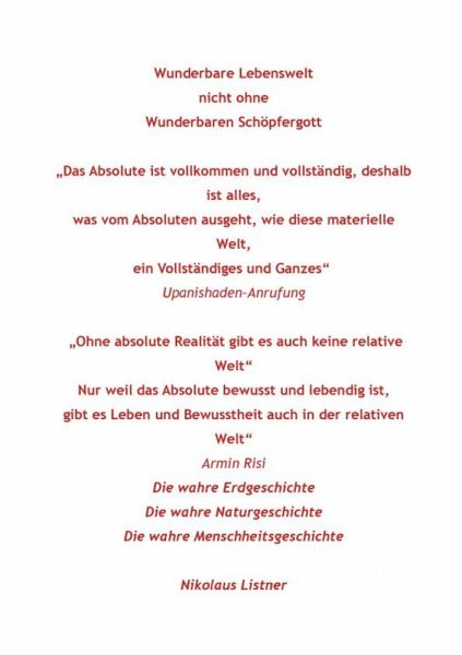 Jegliche materielle Schöpfung, ob technischer, menschlicher oder göttlicher Art setzt eine schöpferische Instanz voraus. Noch unverstelltes und ursprüngliches Empfinden und Fragen von Kleinkindern machen es uns vor: "Wer hat das Haus gebaut. Warum fährt das Auto so schnell. Wer hat den Baum. Wer hat den Hasen gemacht." Also, was ist die Ursache all der materiellen Formen und Lebewesen, die uns in dieser Welt begegnen. Eine Sternengalaxie mit Milliarden von Sonnen muss gewirkt sein von kreativen Instanzen, auch wenn diese unsichtbar sind. Die Logik sagt uns: Aus Chaos entstehen nicht von selbst Ordnungssysteme. Ob das nun die zwölf Sternenbilder sind oder Einzeller wie Bakterien, in denen pro Sekunde über 100 000 physikochemische Reaktionen in exakter Kohärenz ablaufen. Man muss nur einmal einen guten Tropenwald-Naturfilm ansehen und man spürt eine begeisterte Schöpfungsfantasie hinter der Farbenpracht und Perfektion nur eines Chamaelions, das seine Augen unabhängig voneinander 180° drehen kann - welche geniale Idee ist dem unsichtbaren elohim als Schöpfungswesen aus der reinen spirituellen Dimension eingefallen? Die Logik sagt uns, dass eine objektive Welt(Kosmos) eine subjektive Welt voraussetzt, auch wenn diese unsichtbar als der Bereich hinter den Kulissen "des Weltentheaters" zeitlos existiert. Hinter jedem Kosmos muss eine kreative Instanz einen bewussten williglichen Entschluss fassen: Indem der höchste Schöpfergott spricht: Ich will - oder es werde - und dann die notwendigen Handlungen zielgerichtet folgen lassen! Kausalität und Finalität sind die unverwechselbaren Markenzeichen aller Herrlichkeiten in einem endlosen Universum, von dem wir nur einen Ausschnitt beobachten können.