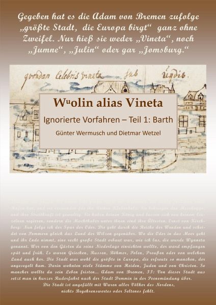 Mündete der Oderstrom dereinst beim heutigen Urlaubsparadies Fischland-Darß-Zingst in die Ostsee? Die Autoren meinen: Ja! Für sie ist das der Schlüssel zur Lösung des Vineta-Rätsels. Denn: Winneta/Vineta heißt bei ihnen fast das gesamte Ostseeküsten-land - das Wendenland, wo die Véneti wohnten. Die Stadt selber, nach Adam von Bremen zufolge die "größte Stadt, die Europa birgt", gab es ganz ohne Zweifel. Nur hieß sie weder "Vineta" noch "Jumne", "Julin" oder gar "Jómsburg". Sie lag auch nicht in Wollin (Wolin), wie man aus Lehrbüchern und Nachschlagewerken erfährt. Was es nun mit "Vineta alias Wuolin" auf sich hat, erklären die Autoren anhand der geschichtlichen Zusammenhänge und legen dazu präzise Interpretationen der von alters her überlieferten Fakten vor. Umfangreiche Quellenverzeichnisse, zahlreiche Illustrationen, Karten und Fotos bereichern die spannende Lektüre über die Christianisierung des Nordostens. Kurzum: "Vinetastadt" als Beiname für Barth und die Theorie, das Handelsemporium habe bei den Boddengewässern gelegen, ist alles andere als Unfug.