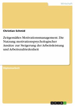 Diplomarbeit aus dem Jahr 2007 im Fachbereich Führung und Personal - Sonstiges, Note: 1,5, Hochschule für Wirtschaft und Umwelt Nürtingen-Geislingen; Standort Geislingen, Sprache: Deutsch, Abstract: Das Ziel der vorliegenden Schrift ist die Darstellung motivationspsychologischer Erkenntnisse und ihre kritische Betrachtung. Darauf aufbauend sollen geeignete Maßnahmen zur Steigerung der Arbeitszufriedenheit und Arbeitsleistung abgeleitet werden. Ferner soll für die Vorstellung geworben werden, dass Leistung und Zufriedenheit als gleichberechtigte Ziele anzustreben sind (VON ROSENSTIEL, 2001, S. VII). Um ein Verständnis zu vermitteln, was sich hinter dem Begriff der Motivation und der damit zusammenhängenden Aspekte verbirgt, soll in Kapitel eins zunächst eine Einführung in die Grundlagen der Motivation erfolgen. Die Ausführungen sind deshalb bewusst sehr allgemein gehalten. Anschließend erfolgt eine Diskussion zu verschiedenen Fragen der Motivation im Kontext der beruflichen Arbeit. Die Untersuchung dieser motivationalen Aspekte bezieht sich demzufolge spezifisch auf die Situation im Betrieb. Das dritte Kapitel analysiert die Konstrukte Arbeitszufriedenheit und Arbeitsleistung, wobei der Schwerpunkt auf die Arbeitszufriedenheit gelegt wurde. Schließlich soll im letzten Kapitel eine Auseinandersetzung mit verschiedenen Möglichkeiten zur Steigerung der Arbeitszufriedenheit und Arbeitsleistung erfolgen. Diese Ausführungen sind nicht isoliert von den vorherigen Kapiteln zu sehen, da sie im Wesentlichen auf die dort beschriebenen Aspekte aufbauen und diese systematisch einbeziehen. Zu diesem Zweck finden sich bei bereits zuvor erwähnten Themenbereichen und Fachtermini entsprechende Hinweise auf das einschlägige Kapitel bzw. den Abschnitt. Dadurch soll das Nachschlagen bei etwaigen Unklarheiten erleichtert werden. Der Umfang dieses abschließenden Teils ist vergleichsweise hoch. Dies zeigt, dass hier der Schwerpunkt der Arbeit zu finden ist.