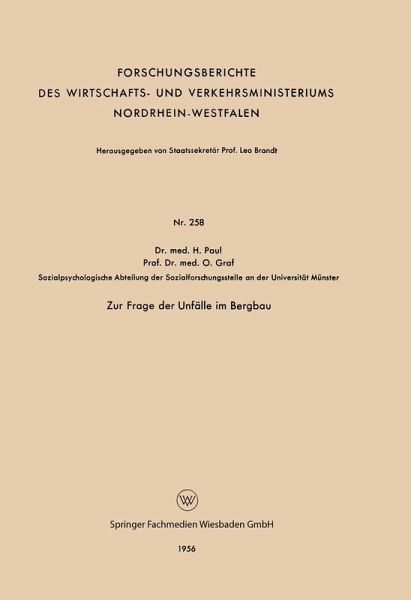 Gliederung.- A. Methode der Untersuchung.- B. Die untersuchte Zeche.- I. Lage und technische Gegebenheiten.- II. Die Belegschaft.- III. Die Unfallsituation.- C. Allgemeine Übersicht über die Unfälle.- I. Umfang der Erhebung.- II. Zeitliche Verhältnisse.- III. Die Unfallhergänge.- IV. Die Unfallverletzungen.- D. Zusammenfassung.