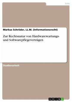 Studienarbeit aus dem Jahr 2008 im Fachbereich Jura - Medienrecht, Multimediarecht, Urheberrecht, Note: 10,50 Punkte, Heinrich-Heine-Universität Düsseldorf (Zentrum für Informationsrecht), Veranstaltung: Seminar IT-Verträge, Sprache: Deutsch, Abstract: Große wirtschaftliche Bedeutung im Bereich der IT-Verträge haben Softwarepflege- und Hardwarewartungsverträge. Der Anbieter sichert sich somit über die reine Software- oder Hardwarebeschaffung bzw. Erstellung hinaus eine laufende Vergütung und bindet den Anwender auch künftig an sich. Der Anwender sichert über diese Verträge seine Investitionen ab. Die Soft- und Hardware bleibt funktionstüchtig und auf dem aktuellen Stand der Technik. Höchst umstritten ist jedoch die Rechtsnatur dieser Verträge. Entsprechend der jeweiligen vertragstypologischen Zuordnung können sich dabei insbesondere Folgen für die Mängelhaftung ergeben. Die vorliegende Arbeit stellt die verschiedenen Ansichten hierzu vor und bewertet diese.