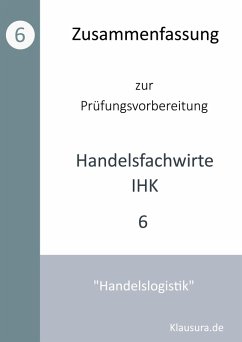 Diese Zusammenfassung wurde von erfahrenen Dozenten zusammengestellt, die über viele Jahre Erfahrung in der Ausbildung und Prüfungsvorbereitung zum geprüften Handelsfachwirt IHK verfügen. Die hier erstellte Zusammenfassung wird von den Dozenten auch in ihren Unterrichtseinheiten verwendet und bildet somit eine fundamentale Grundlage für Ihre persönliche Prüfungsvorbereitung. Anhand des Rahmenstoffplans des DIHK werden die einzelnen Kapitel nach Schwerpunkten zusammengefasst. Für die Prüfung finden Sie hier Zusammenfassungen zu folgenden Themen: 6. Handelslogistik Weitere Unterlagen zur Prüfungsvorbereitung, in Form von Aufgaben Zusammenfassungen und Leitfäden finden Sie unter klausura.de.