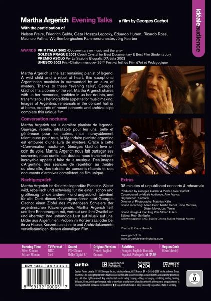 Martha Argerich ist die letzte legendäre Pianistin. Sie ist wild, rebellisch und schwierig für die einen, schön und großherzig für die anderen - und unglaublich talentiert für alle. Dank dieses "Nachtgesprächs" hebt Georges Gachot einen Zipfel des mysteriösen Schleiers der argentinischen Klavierlegende. Martha Argerich teilt uns ihre Erinnerungen mit, vertraut uns ihre Zweifel an und überträgt ihre unbändige Lust auf Musik auf uns. Bilder aus Argentinien, Proben im Konzertsaal oder bei ihr zu Hause, Konzertausschnitte und Archivdokumente vervollständigen diesen einmaligen Film.