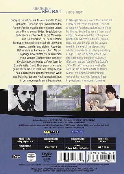 Georges Seurat hat die Malerei auf den Punkt gebracht. Der Sohn einer wohlhabenden Pariser Familie machte das moderne Leben zum Thema seiner Bilder. Begeistert von Farbtheorien entwickelte er die Malweise des Pointillismus, bei dem einzelne Farbtupfer nebeneinander auf die Leinwand gesetzt werden und sich im Auge des Betrachters zu Farben mischen. Als der 31-jährige unvermittelt starb, hinterließ er nur wenige Großgemälde, darunter 'Ein Sonntagnachmittag auf der Insel La Grande Jatte'. David Thompson untersucht gemeinsam mit Künstlern wie Henry Moore das künstlerische und theoretische Werk des Mannes, der den Neoimpressionismus in der modernen Malerei begründete.