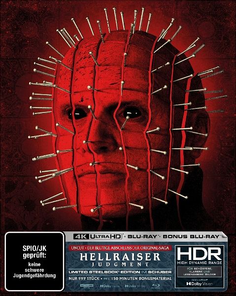 Full Slip C Audiokommentar von Autor/Regisseur/"Auditor" Gary J. Tunnicliffe (präsentiert von Midnights Edge)* Audiokommentar von Gary J. Tunnicliffe, "Pinhead" Paul T. Taylor und Hauptdarsteller Damon Carney* The Making of HELLRAISER: JUDGMENT: Hinter den Kulissen der Pre-Production und Dreharbeiten Interviews mit Cast & Crew** (ca. 44 Min.) Meet The Auditor - Ein Interview mit Gary J Tunnicliffe** (ca. 48 Min.) Chatterer Talks - Ein Interview mit Mike Regan** (ca. 24 Min.) NO MORE SOULS: Tunnicliffes Hellraiser-Kurzfilm* (ca. 6 Min.) Audiokommentar (präsentiert von Midnights Edge)* Making-of* (ca. 7 Min.) Entfernte und gekürzte Szenen* (ca. 17 Min.) Outtakes** (ca. 4 Min.) Kickstarter-Trailer*, US-Trailer, HELLRAISER-Trailer * mit optionalen deutschen/englischen Untertiteln ** HD, mit optionalen deutschen/englischen UntertitelnHinweis: Dieser Artikel kann nur an eine deutsche Lieferadresse ausgeliefert werden.