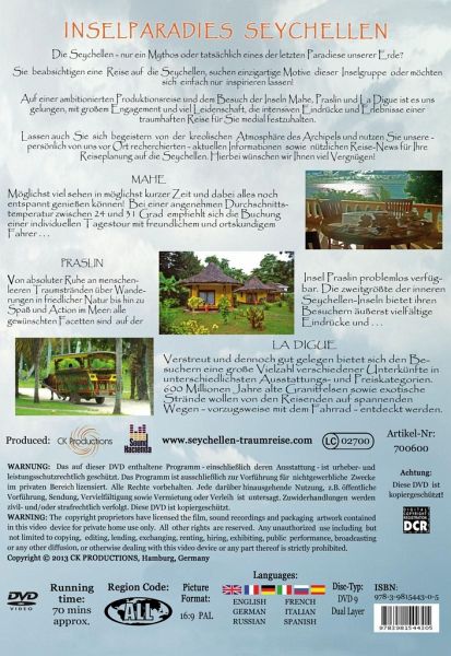 Die Seychellen - nur ein Mythos oder tatsächlich eines der letzten Paradiese unserer Erde? Sie beabsichtigen eine Reise auf die Seychellen, suchen einzigartige Motive dieser Inselgruppe oder möchten sich einfach nur inspirieren lassen! Auf einer ambitionierten Produktionsreise und dem Besuch der Inseln Mahe, Praslin und La Digue ist es uns gelungen, mit großem Engagement und viel Leidenschaft, die intensiven Eindrücke und Erlebnisse einer traumhaften Reise für Sie medial festzuhalten. Lassen auch Sie sich begeistern von der kreolischen Atmosphäre des Archipels und nutzen Sie unsere - persönlich vor Ort recherchierten - aktuellen Informationen sowie nützlichen Reise-News für Ihre Reiseplanung auf die Seychellen. Hierbei wünschen wir Ihnen viel Vergnügen!