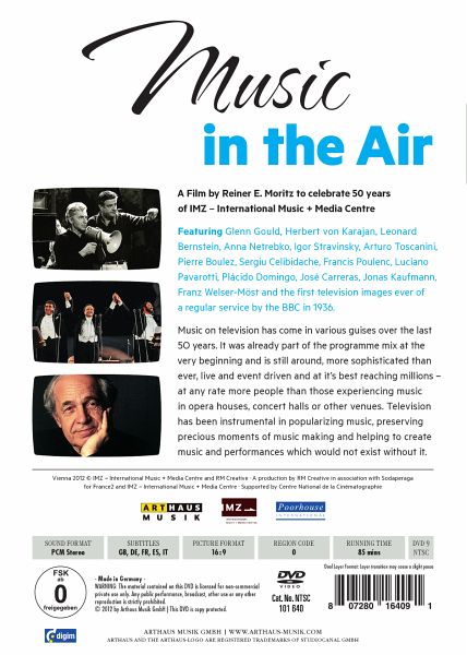 Was in den 60er und 70er Jahren die Shows im Amerikanischen Fernsehen waren, in denen der Komponist und Dirigent Leonard Bernstein ein Millionenpublikum mit Klassischer Musik unterhalten konnte, sind heute die weltweiten Live-Ausstrahlungen von Opern in großen Multiplex-Kinos. Nicht nur Klassische Musik hat in der zweiten Hälfte des 20. Jahrhunderts durch die mediale Globalisierung an Popularität gewonnen. Auch Stars wie Anna Netrebko oder Rolando Villazón haben eine ungeahnte Aufmerksamkeit durch das Fernsehen erfahren, die schon bei Herbert von Karajan anfing. Die Musikdokumentation "Music in the Air" gibt einen vielfältigen Einblick in die Welt des Fernsehens und der (Klassischen) Musik.