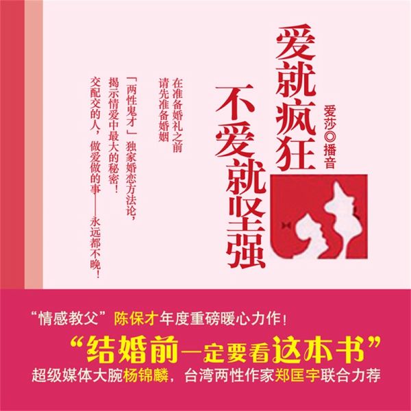 内容简介: 著名情感作家、实战派顶级婚恋导师、"微观爱情"理论的创始人陈保才,迄今最犀利的"红尘法则"。作为"两性鬼才",陈保才在新书中通过一个个现实中鲜活的案例,层层剖析,贡献独家婚恋方法论,揭示情爱中最大的秘密!用多少力去爱?怎样爱才能不受伤?如何获得真正的幸福?知道这些问题的答案,比得到爱情本身重要得多。在准备婚礼之前,请先准备婚姻。 作者简介: 陈保才,畅销书作家,暖心婚恋专家,文化策划人,资源整合专家,凤凰卫视《社会正能量》、腾讯视频《夜夜谈》、深圳都市频道《第一调解》《市民文化大讲堂》、香港卫视《东边西边》、亚太卫视《V影天下》等节目嘉宾,多家政府和企业文化顾问,香港浸会大学等名校婚恋演讲嘉宾,《广州日报》、菲律宾《世界日报》等100多家媒体专栏作家,"微观爱情"理论的创始人,横跨媒体、时尚、娱乐和财经等众多领域,人称"爱神陈保才"、"情感教父"、"两性鬼才"、"中国的渡边淳一"。   著有畅销书《在荒凉的世界温暖相爱》《第三只眼看男人》《细节给力,爱情得意》《20岁学会恋爱,30岁收获幸福》《恋上你的味儿》《与美食私奔——餐桌上的爱情法则》等,新书《最美的时光最好的爱》《不害怕,不后悔,人生就会很精彩》《跟电影私奔》《最爱的女子》即将上市,掀起"陈保才风暴"!