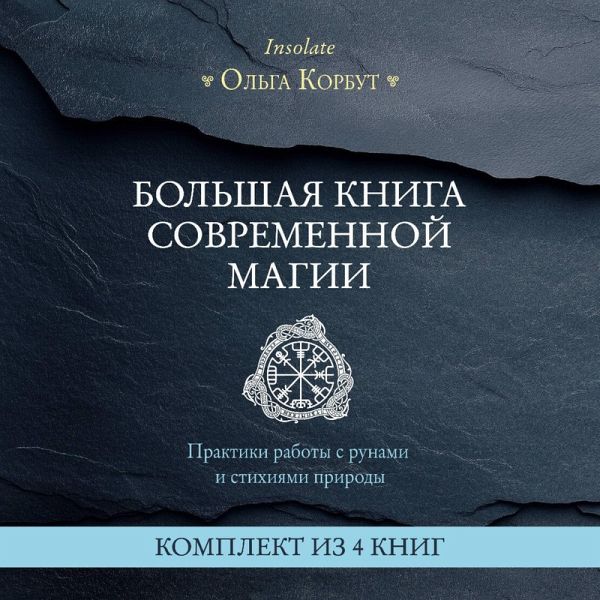 Komplekt "Bolshaya kniga sovremennoy magii. Praktiki raboty s runami i stihiyami prirody" Olgi Korbut, runologa i spetsialista po prakticheskoy magii, takzhe izvestnoy v seti, kak Insolate, obedinyaet znaniya o drevnih magicheskih traditsiyah i ih primenenii v sovremennosti. V nego voshli 4 knigi avtora: "Runy. Teoriya i praktika raboty s drevnimi silami", "Magiya run. Prakticheskoe rukovodstvo po sozdaniyu i ispolzovaniyu runicheskih formul", Magiya stihiy. Kak ispolzovat sily prirody, chtoby poluchit podderzhku i zaschitu" i "Koleso goda. Kalendar magicheskih del i prazdnikov dlya sovremennoy vedmy". Kniga "Runy: teoriya i praktika raboty s drevnimi silami" pogruzit vas v mir runicheskogo iskusstva i nauchit ispolzovat ego dlya lichnostnogo rosta, gramotno provodit diagnostiku lyubyh svoih zhiznennyh situatsiy i pomozhet izbezhat rasprostranennyh oshibok v rabote s runami. "Magiya run: prakticheskoe rukovodstvo po sozdaniyu i ispolzovaniyu runicheskih formul" obuchaet, kak pravilno sostavlyat stavy i ispolzovat gotovye, kak i kuda ih nanosit, aktivirovat i chitat, a takzhe dano bolee 60 tematicheskih stavov dlya zaschity blizkih, raskrytiya vashego potentsiala, uspehov v karere i mnogogo drugogo. V knige "Magiya stihiy: kak ispolzovat sily prirody, chtoby poluchit zhelaemoe" avtor delitsya metodami vzaimodeystviya s ognem, vodoy, zemley i vozduhom dlya dostizheniya garmonii. V knige privedeny ritualy i praktiki, kotorye po silam dazhe nachinayuschim. Nakonets, "Koleso goda: kalendar magicheskih del i prazdnikov dlya vedm" rasskazyvaet, kak prozhit god ot Yolya do Samayna s naibolshey polzoy dlya sebya i svoih blizkih. Vy uznaete, kak otmechat vosem prazdnikov Kolesa goda v nashi dni, poznakomites s sezonnymi praktikami, a takzhe smozhete vklyuchit sovremennye prazdniki i pamyatnye daty v svoyu vedmovskuyu praktiku. "Bolshaya kniga sovremennoy magii" stanet nezamenimoy dlya vseh, kto hochet integrirovat silu run i stihiy v sovremennuyu zhizn i raznoobrazit svoyu magicheskuyu praktiku.