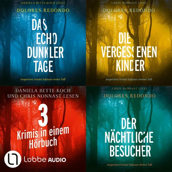 Die komplette Baztán-Trilogie von Dolores Redondo in einem Hörbuch! DAS ECHO DUNKLER TAGE - gelesen von Daniela Bette-Koch Im Baztán-Tal in den spanischen Pyrenäen werden kurz hintereinander die Leichen dreier Mädchen gefunden. Bald munkeln die Einheimischen, ein Basajaun - ein haariges Biest aus der baskischen Mythologie - treibe in den Wäldern sein Unwesen. Inspectora Amaia Salazar von der Kriminalpolizei Pamplona dagegen sucht nach einem Mörder aus Fleisch und Blut. Für sie beginnt ein Kampf an zwei Fronten: Sie muss nicht nur den Mörder finden, bevor er erneut zuschlagen kann, sondern zugleich gegen die Geister ihrer eigenen Vergangenheit kämpfen ... DIE VERGESSENEN KINDER - gelesen von Chris Nonnast Der Mörder und Vergewaltiger Jasón Medina steht in Pamplona vor Gericht. Doch plötzlich bricht der Richter die Verhandlung ab, denn der Angeklagte hat sich auf der Toilette im Gerichtsgebäude die Pulsadern aufgeschlitzt. Er hinterlässt eine rätselhafte Nachricht an Inspectora Amaia Salazar, die nur ein einziges Wort enthält: "Tarttalo" - den Namen eines einäugigen Ungeheuers aus der baskischen Mythologie. Wer verbirgt sich dahinter? Und was hat Amaia Salazar damit zu tun? DER NÄCHTLICHE BESUCHER - gelesen von Chris Nonnast Der rätselhafte Tod eines Babys führt Inspectora Amaia Salazar erneut ins beschauliche Baztán-Tal am Fuß der Pyrenäen. Für die Urgroßmutter des Kindes steht der Täter fest: Inguma, ein mythologisches Wesen, das schlafenden Kindern den Atem raubt. Amaia Salazar dagegen überführt den Vater, der seine eigene Tochter im Schlaf erstickt hat. Doch damit ist der Fall noch lange nicht abgeschlossen, denn die Ermittlerin stößt auf weitere ungeklärte Kindstode, die sich in der Gegend zu häufen scheinen ...