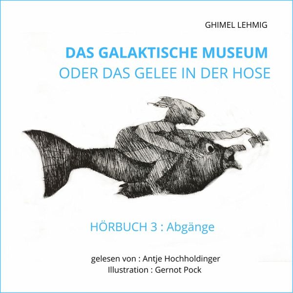 Der Roman "Das Galaktische Museum" hinterfragt in drei Büchern humorvoll den Zustand der Bildenden Kunst im Jahr 2000. Im Zusammenspiel von Inhalt und äußerer Erscheinung entsteht eine hohe gestalterische Qualität. Diese Qualität umfasst Text (Ghimel Lehmig), Illustration (Gernot Pock und Jakob Pock), Layout (Kata Buschek) und ist auch als gedruckte Buchausgaben erhältlich. Die nunmehr vorhandenen Hörbücher, wunderbar vorgetragen von Antje Hochholdinger, runden das Gesamtwerk vollendet ab. Der Roman "das galaktische Museum oder das Gelee in der Hose" besteht aus 3 Teilen BUCH 3 : Abgänge - Teil 3/3 Kunst ist Fantasie, die aber des Daseins bedarf. Sie lässt uns lachen, sie lässt uns weinen. Doch in ihr ist kein Halt. Neun Künstler, die uns an das Herz gewachsen sind, haben uns durch das Galaktische Museum begleitet. Wohin führt sie das Geschick? Das Wegkreuz am Eingang zum Paradies weist die Richtung : sie gehen DAHIN… Doch es bleibt die Erinnerung und in ihr verborgen sind Freundschaft und Liebe.