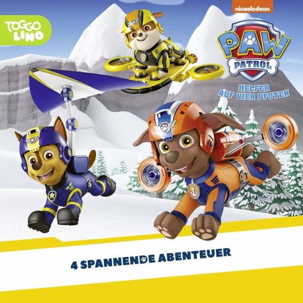 PAW Patrol: Das sind Chase, Marshall, Rocky, Zuma, Rubble und Skye. Mit ihren speziellen Fähigkeiten und coolen Fahrzeugen schaffen sie es, jede Mission zu bewältigen! Als Bürgermeisterin Gutherz und Bürgermeister Besserwisser beim Eisfischen in eine Gletscherspalt geraten brauchen Sie von der Air Patrol hilfe. Außerdem wird die Farm der Wingnuts zum Schauplatz einer Gameshow mit Cowgirl Beryl als Moderatorin! Und in zwei weiteren Abenteuern wollen die Welpen ein Meisterwerk aus Kreide vor dem Regen retten und sind auf der Suche nach Bauer Alfreds Regenbogenkartoffel. Doch für die PAW Patrol gilt: Kein Einsatz zu groß, keine Pfote zu klein!…mehr