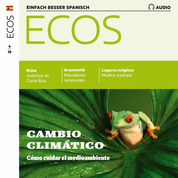 Nachhaltiger Urlaub, plastikfrei, wiederverwenden, recyceln: Umweltschutz und der drohende Klimawandel stehen im Mittelpunkt bei ECOS Spanisch lernen Audio. Dialoge, Redemittel und Wortschatz zum Thema und außerdem eine Reise ins Land des nachhaltigen Tourismus par excellence – Costa Rica. Auch Familie Pérez aus Madrid versucht sich an der Umstellung ihres Lebensstils. Sprachlich befassen wir uns außerdem mit Zeitangaben – "marcadores temporales" – wie "ahora mismo", "con frecuencia", "todavía", "ya", "hoy en dia" und etlichen mehr. Hinzu kommen Erklärungen und Übungen zur Redewendung "a mal tiempo, buena cara". Ein Besuch in der alten Kalifenstadt Medina Azahara bei Córdoba in Andalusien, ein Reisebericht zu Barcelona und Nachrichten aus Kantabrien und Venezuela runden die aktuelle Ausgabe ab. Spanisch lernen mit "Ecos Audio" Inhalt: mp3-Downloads inkl. 28-seitigem Booklet mit allen gesprochenen Texten zum Nachlesen und zweisprachigem Glossar (PDF-Format), Sprache: Spanisch. Hören und Verstehen ist der beste Weg zum perfekten Spanisch. Das spanische Sprachtraining bietet Ihnen in ca. 60 Minuten interessante Beiträge, Interviews und Hintergrundberichte aus der gesamten spanischsprachigen Welt. Die Texte werden von Muttersprachlern vorgetragen. Ob verschiedene Dialekte oder Ausdrucksweisen – mit ECOS Audio lernen Sie ganz leicht die verschiedenen Facetten der spanischen Sprache kennen. Neben O-Ton-Interviews und Kultur-Tipps enthält jeder Audio-Download eine umfangreiche journalistische Reportage und einen sprachlichen Schwerpunkt zu spanischer Grammatik und spanischem Wortschatz.