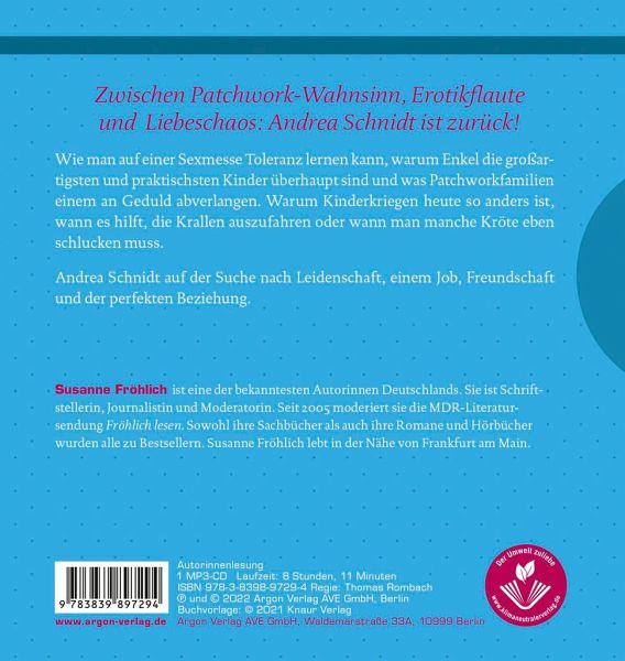 Die humorvollen Romane um Andrea Schnidt von Bestseller-Autorin Susanne Fröhlich sind in folgender Reihenfolge erschienen: Frisch gepresst, Frisch gemacht!, Familienpackung, Treuepunkte, Lieblingsstücke, Lackschaden, Aufgebügelt, Wundertüte, Feuerprobe, Verzogen.