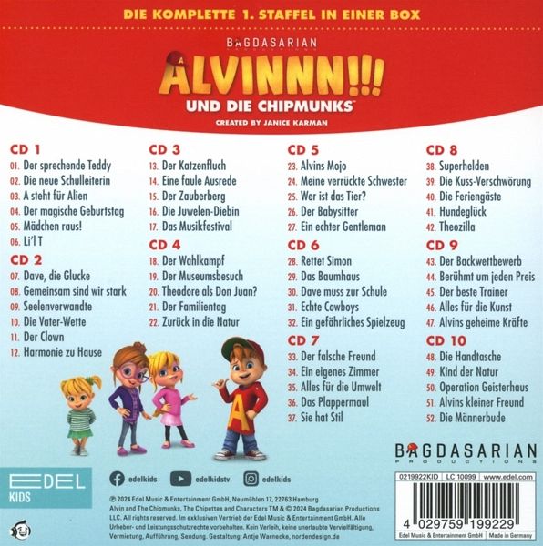 | 9 | Der Backwettbewerb / Berühmt um jeden Preis / Der beste Trainer / Alles für die Kunst / Alvins geheime Kräfte | 00:02:08 | |