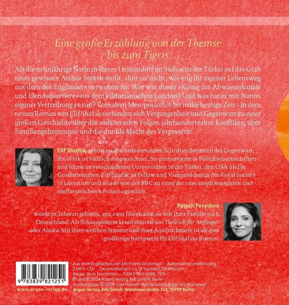 Narin ist neun, als in dem ezidischen Dorf am Tigris Planierraupen auftauchen. Ihre Heimat soll einem Dammbauprojekt der türkischen Regierung weichen. Die Großmutter, fest entschlossen, die Enkelin an einem ungestörten Ort taufen zu lassen, bereitet alles für die Reise ins heilige Lalisch-Tal vor. Kurz vor Aufbruch stößt Narin auf das Grab eines gewissen Arthur - direkt neben dem ihrer Ururgroßmutter Leila. Wer war dieser »König der Abwasserkanäle und Elendsquartiere«, der Junge aus dem viktorianischen London, von den Ufern der verschmutzten Themse? Und was hat er mit Narins eigener Vertreibung zu tun?