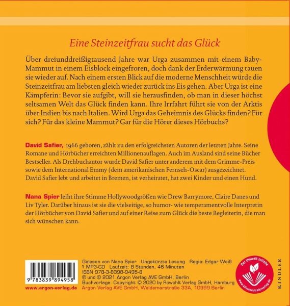 10.000 Jahre war die Steinzeitfrau Urga zusammen mit einem Baby-Mammut in einem Eisblock eingefroren, doch dank der Erderwärmung tauen sie wieder auf. Nach einem ersten Blick auf die Menschheit würde Urga am liebsten wieder zurück ins Eis gehen. Alles, was sie jemals liebte, hat sie verloren. Aber Urga ist eine Kämpferin: Bevor sie aufgibt, will sie herausfinden, ob sie nicht auch in dieser Welt das Glück finden kann. Auf ihrer Reise wird sie vom App-Entwickler Felix Sommer, seiner gewitzten Tochter Maya und dem kauzigen Kapitän Lovskar begleitet. Ihre Irrfahrt führt sie von Bhutan bis Finnland. Doch ein Team von skrupellosen Wissenschaftlern ist ihnen auf den Fersen. Sie möchten an der Steinzeitfrau Experimente durchführen ...