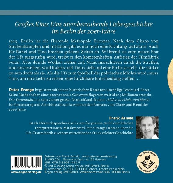 Frank Arnold ist als Hörbuchsprecher ein Garant für präzise, wohl durchdachte Interpretationen. Mit ihm wird Peter Pranges Kinoroman zu einem mitreißenden Stück erlebter Geschichte.