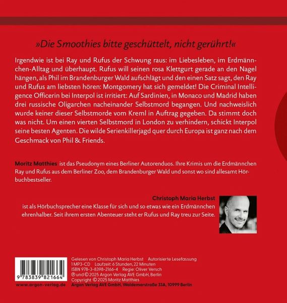 Mit „Boom Boom Babuschka“ von Moritz Matthies, dem Pseudonym hinter dem Hans Rath und Edgar Rai stecken, dürfen wir gemeinsam mit Phil & Friends bereits im 10. Fall ermitteln. Und mit diesem Fall habe ich tatsächlich mein erstes Hörbuch gehört. Ein wirkliches Erlebnis, das mit dem Sprecher Christoph Maria Herbst, den ich bislang vorwiegend als Stromberg kannte und liebte, perfekt in Szene gesetzt wurde und der auch der Grund war, mich auf das unbekannte Medium Hörbuch einzulassen.