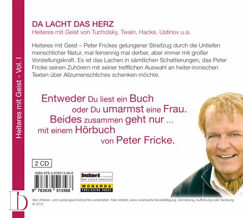 Peter Frickes gelungener Streifzug durch die Untiefen menschlicher Natur, mal feinsinnig mal derb, aber immer mit großer Imaginationskraft. Es ist das Lachen in sämtlichen Schattierungen, das er seinen Zuhörern mit dieser gelungenen Auswahl an heiter-ironischen Texten über Allzumenschliches "bescheren" möchte.