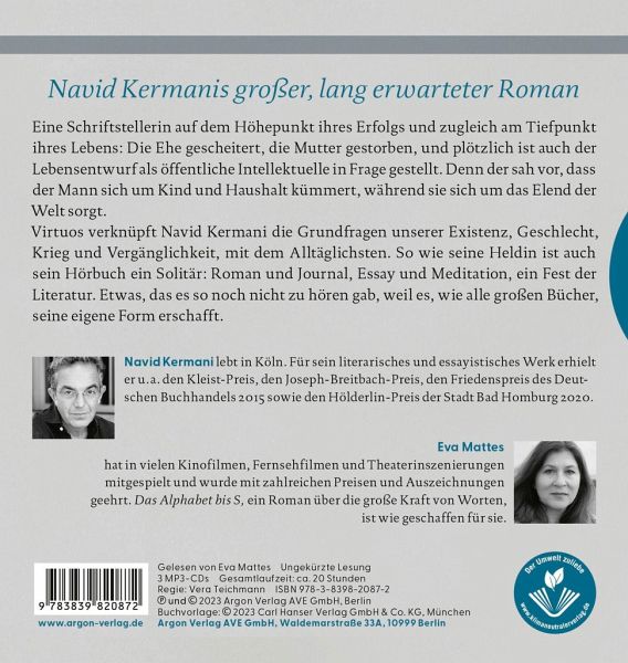 Virtuos verknüpft Navid Kermani die Themen unserer Zeit, Krieg, Geschlecht und Identität, mit dem Alltäglichsten. So wie seine Heldin ist auch sein Hörbuch ein Solitär: Roman und Journal, eine Hommage an den Zauber der Literatur.
