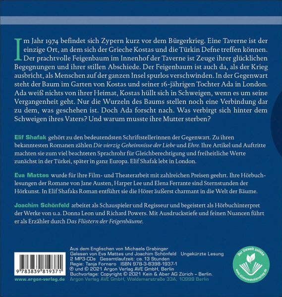 »Mattes leiht der Feige ihre warme Stimme, nachdenklich, etwas melancholisch. Schönfeld gestaltet als Erzähler die beiden anderen Stränge, verknüpft souverän Handlungsfäden, haucht den Figuren Leben ein. Ein sehr gelungenes Hörbuch.« Christian Kosfeld WDR 20220203