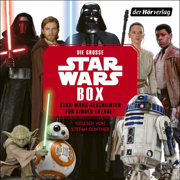 In dieser Hörbuchbox gibt es 41 spannende Geschichten aus dem »Star Wars«-Universum von Episode I bis VIII über die beliebtesten Helden und Schurken zu hören: Jedi-Meister Yoda hat einen Lichtschwert-Showdown mit dem gefürchteten Count Dooku und Luke Skywalker und die Rebellen führen einen Kampf gegen die Zeit, um den Todesstern zu zerstören. Die Droiden C-3PO und R2-D2 stranden nach einem Sturmtruppler-Angriff auf dem Wüstenplaneten Tatooine und Rey tritt im Lichtschwertkampf gegen Kylo Ren an. Mit Figuren wie Anakin Skywalker, Han Solo, Chewbacca, Prinzessin Leia, Darth Vader und Darth Maul bieten diese Geschichten galaktische Abenteuer in Lichtgeschwindigkeit!