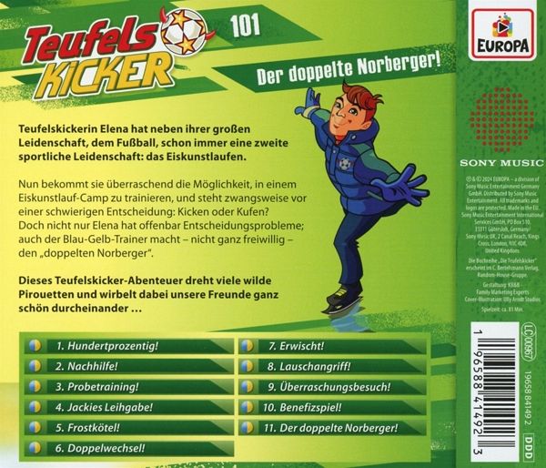 Teufelskickerin Elena hat neben ihrer großen Leidenschaft, dem Fußball, schon immer eine zweite sportliche Leidenschaft: das Eiskunstlaufen. Nun bekommt sie überraschend die Möglichkeit in einem Eiskunstlauf-Camp zu trainieren, und steht zwangsweise vor einer schwierigen Entscheidung: Kicken oder Kufen? Doch nicht nur Elena hat offenbar Entscheidungsprobleme auch der Blau-Gelb-Trainer macht - nicht ganz freiwillig - den Doppelten Norberger. Dieses Teufelskicker-Abenteuer dreht viele wilde Pirouetten und wirbelt dabei unsere Freunde ganz schön durcheinander...