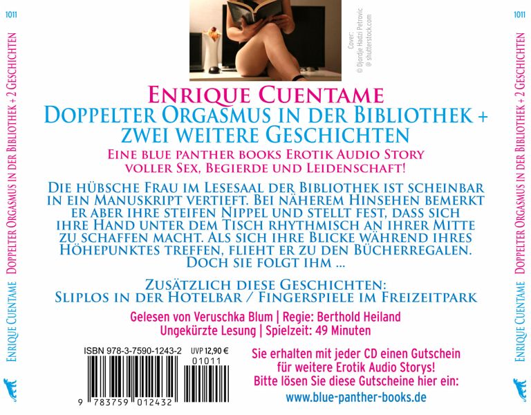 Die hübsche Frau im Lesesaal der Bibliothek ist scheinbar in ein Manuskript vertieft. Bei näherem Hinsehen bemerkt er aber ihre steifen Nippel und stellt fest, dass sich ihre Hand unter dem Tisch rhythmisch an ihrer Mitte zu schaffen macht. Als sich ihre Blicke während ihres Höhepunktes treffen, flieht er zu den Bücherregalen. Doch sie folgt ihm ...Gelesen von Veruschka BlumRegie: Berthold HeilandUngekürzte LesungSpielzeit: 49 MinutenDiese Ausgabe ist vollständig, unzensiert und enthält keine gekürzten erotischen Szenen.