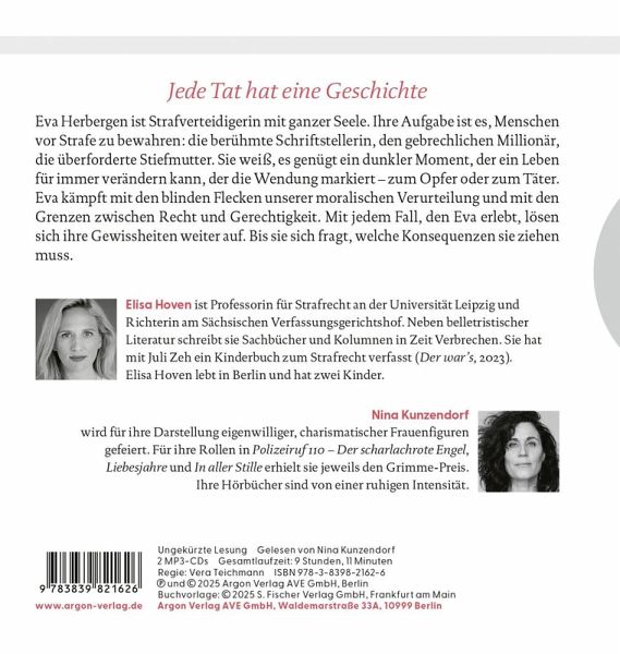 Dunkle Momente ist ein packendes Hörbuch über die ethischen und moralischen Dilemmata jedes Einzelnen, darüber, dass Recht und Gerechtigkeit nicht immer das Gleiche sind. Mit unbestechlichem Blick stellt Elisa Hoven die Eindeutigkeit infrage und zeigt, dass ein Mensch immer mehr ist als seine Tat.