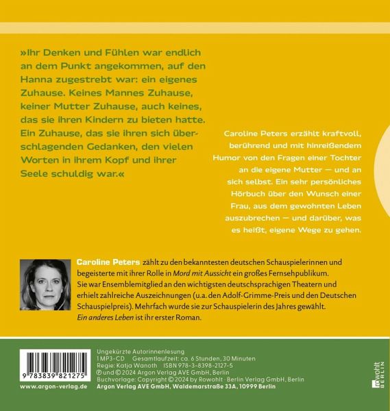 Mit großer Einfühlsamkeit und Leichtigkeit erzählt Caroline Peters von den Fragen einer Tochter an die verstorbene Mutter und an sich selbst - und davon, was es heißt, eigene Wege zu gehen.