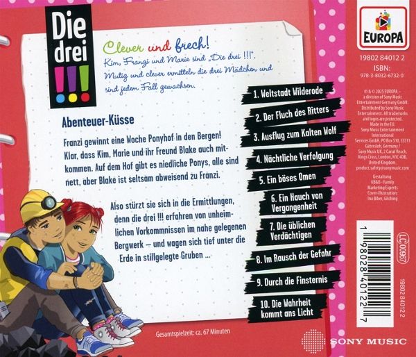 Kim, Franzi und Marie sind Die drei !!!. Mutig und clever ermitteln die drei Detektivinnen und sind jedem Fall gewachsen. Liegt wirklich ein Fluch auf dem alten Bergwerk? Während ihrer Ferien auf einem Ponyhof in Wilderode ermitteln Kim, Franzi und Marie in einem unheimlichen Stollen unter Tage ... und Franzi muss um ihre Beziehung mit Blake bangen. Auf der Suche nach einem Saboteur und den Wurzeln einer alten Legende geraten die beiden in große Gefahr ...