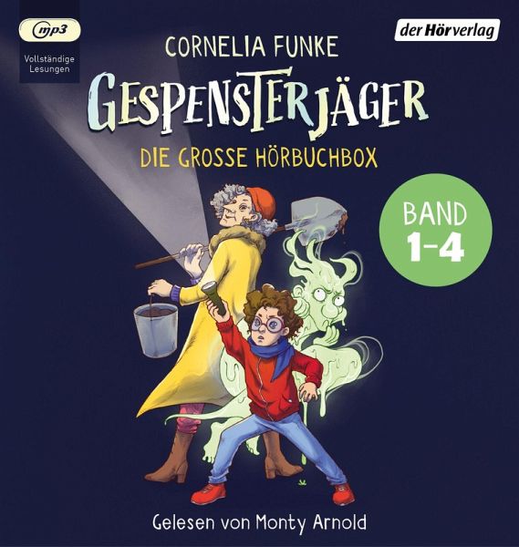 Die ersten vier »Gespensterjäger«-Abenteuer ungekürzt gelesen von Stimmenwandler Monty Arnold in einer Box: »Gespensterjäger auf eisiger Spur«, »Gespensterjäger im Feuerspuk«, »Gespensterjäger in der Gruselburg« und »Gespensterjäger in großer Gefahr«.