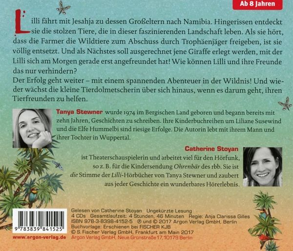 Gemeinsam mit Jesahja fährt Lilli zu dessen Großeltern nach Namibia. Hingerissen entdeckt sie die stolzen Tiere, die in dieser faszinierenden Landschaft leben. Als sie hört, dass die Farmer die Wildtiere zum Abschuss durch Trophäenjäger freigeben, ist sie völlig entsetzt. Und als nächstes soll ausgerechnet jene Giraffe erlegt werden, mit der Lilli sich am Morgen gerade erst angefreundet hat! Lilli braucht die Hilfe all ihrer menschlichen und tierischen Freunde, um das zu verhindern.