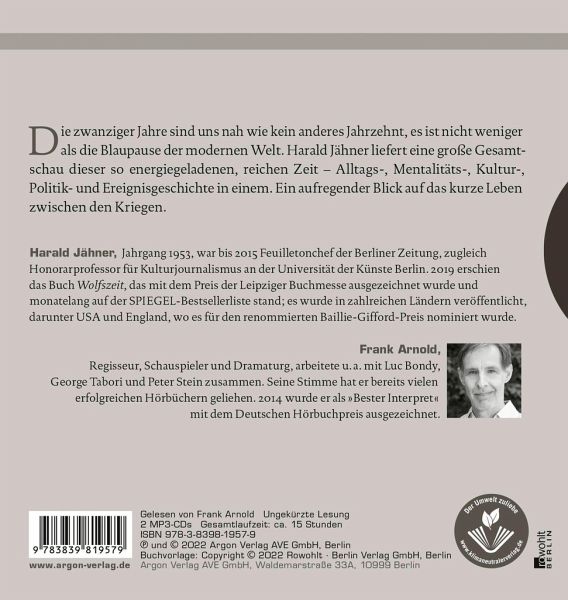 Harald Jähner liefert eine Gesamtschau dieser so pulsierenden, reichen Zeit, wie es sie bislang nicht gab - und zeichnet das Bild eines zerrissenen Landes voll gewaltiger und erschreckender Energien. Es ist uns irritierend ähnlich und - hoffentlich - doch ganz anders.