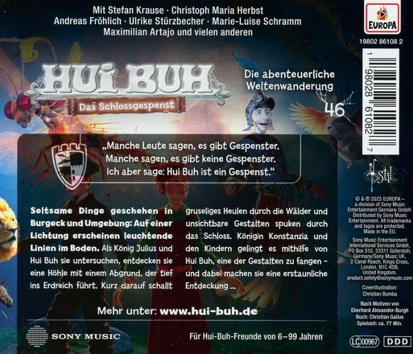 Das Hörspiel Hui Buh – Das Schlossgespenst, Neue Welt: Die abenteuerliche Weltenwanderung (Folge 46), erschienen im EUROPA Verlag (Sony Music Family Entertainment), lädt kleine wie große Hörer zu einer spannenden und zugleich humorvollen Geistergeschichte ein. Basierend auf der beliebten Vorlage von
